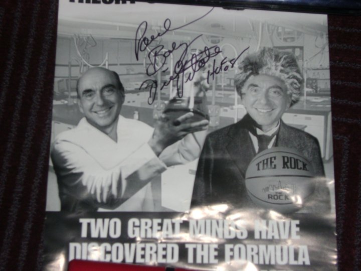 -The trip wouldn’t be complete without meeting (twice) the unofficial Czar of March Madness, Dick Vitale. I’m no fan of Dickie V.’s schtick but I understand the power of his brand and his personality. The night before the title game, to quote my all–time favorite band Blur…“I met him in a crowded room, where people go to drink away their gloom. He sat me down and so began, the story of a charmless man.” Dickie V. was doing a book signing in an invite-only party at Blu, and I (sort of against my will) ended up with a free signed poster of him. Which I might put on Ebay, the picture is funny though.
