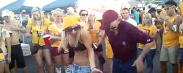 After seeing this video, I understand why the University of Iowa issued their Homecoming tailgate advisory/warning message. Welcome to Tempe, Arizona where college football meets Cancun. I once dated a girl who often claimed that she appeared in an early “Girls Gone Wild” video. That “film credit” is banal and boring compared to the co-eds in this clip. (And yes, she truly was one classy babe)