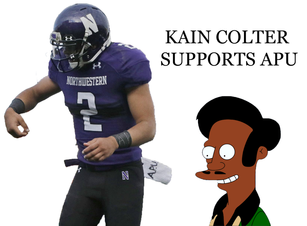 It was a bummer for him to not play in the LOL Bowl, in the final Northwestern football game. Terrible for him to go out that way, but his team did win. And Kain Colter tweeted: