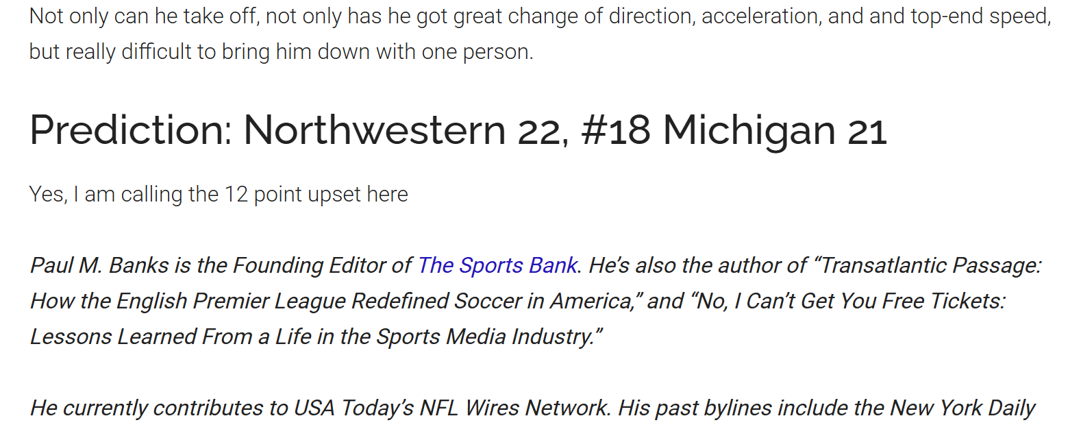 Paul M. Banks is the Founding Editor of The Sports Bank. He’s also the author of “Transatlantic Passage: How the English Premier League Redefined Soccer in America,” and “No, I Can’t Get You Free Tickets: Lessons Learned From a Life in the Sports Media Industry.”