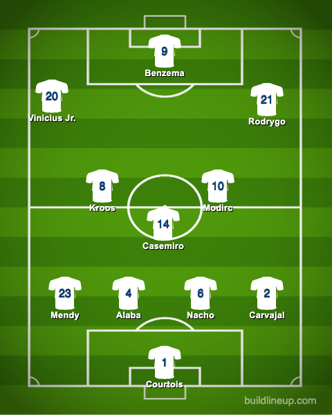 Nacho Fernandez will most likely come in for the suspended Eder Militao as one of the center backs, Austrian superstar David Alaba will partner Nacho in the center half pairing.