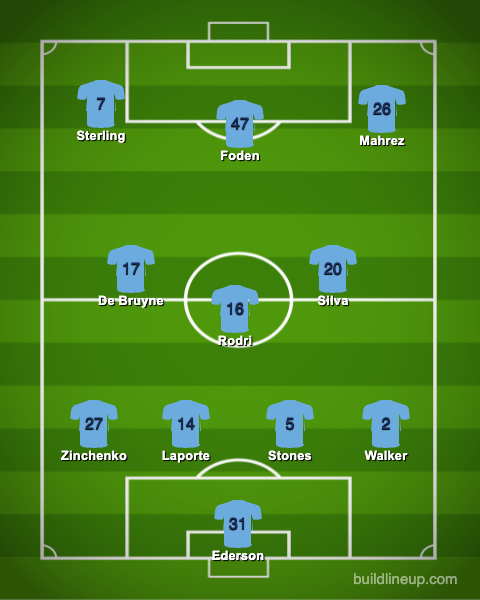 In attack, Phil Foden will start centrally. The young Englishman has made this position his own this season and I see no reason he wouldn’t start here. Riyad Mahrez returns to the starting lineup on the right-hand side of the attack after being another who was rested midweek.