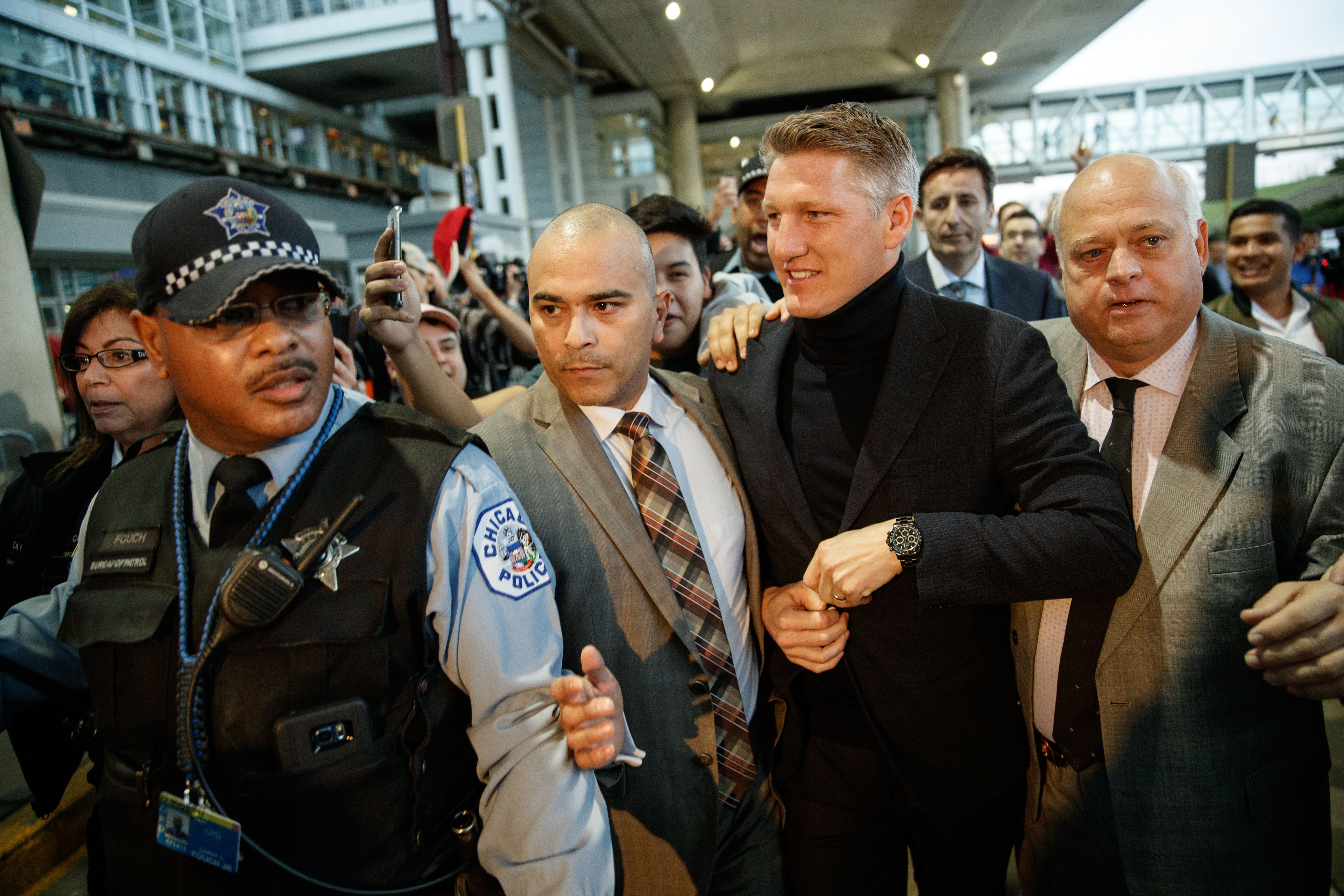 A Thumb's Up to Chicago: @BSchweinsteiger arrives at O'Hare with a big crowd of @ChicagoFire fans welcoming him to town.@WGNNews pic.twitter.com/486Mncdwoq