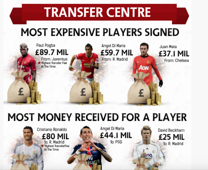 Manchester United is one of the world’s largest, richest, well known and most football clubs of all time. They have broken the British transfer fee purchase record 12 times, most recently with Angel Di Maria in 2014 at £59.3 million.