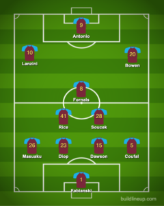 The center backs will be Craig Dawson and Issa Diop. The defensive midfield pivot will be the world-class pairing of Declan Rice and Tomas Soucek. The Czech and the Englishman seem to be getting back to their best form after a minor dip in December. When they are at their best, there are not too many duos better than them.