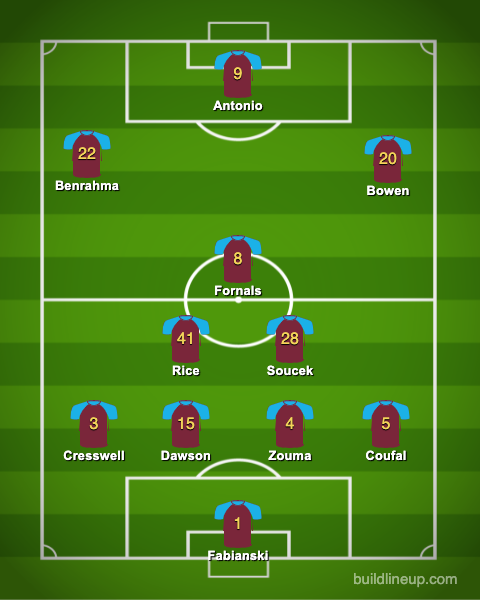 After a stinker of a performance against Wolves, Michail Antonio will return fully rested here to be the focal point of the Hammers attack. He will be flanked by Said Benrahma and Jarrod Bowen as per usual.