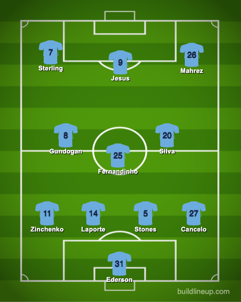 Club captain Fernandinho will return to the starting lineup for this Champions League clash at the base of a midfield three. I think they will rest Kevin De Bruyne to prevent him from picking up a suspension should he receive a yellow card.