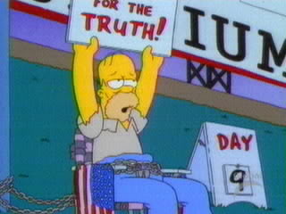 During that specific episode of The Simpsons, Homer went on a hunger strike in hopes of exposing the plan, and it led to his getting chained to a pole in the minor league baseball stadium.
