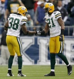 On a positive note, the Packers looked great on the defensive side of the ball last week. Granted, they were playing Brett Favre who may have a little too much Jenn Sterger on his mind, but nonetheless CB Tramon Williams (pictured above) looked spectacular. He held Randy Moss to three catches for 30 yards and has emerged as the Packers best defender in pass coverage this season.