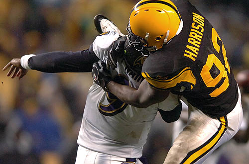After somewhere in the area of $120,000 in fines, there hasn’t been a lot of chatter since Harrison’s post-game comment in the Steelers-Ravens divisional playoff bout. When asked about a non-penalized helmet-to-helmet hit on Pittsburgh’s tight-end Heath Miller, Harrison had an interesting take.