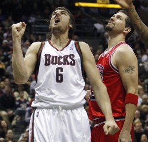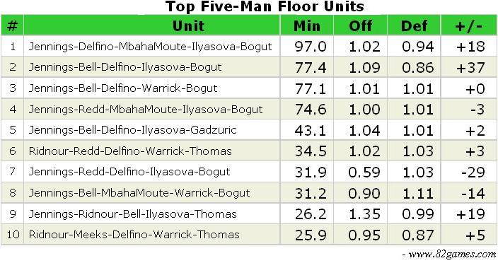 At this point, Carlos Delfino is NOT an option anywhere on the court, and the likeliest lineup from tonight on out will feature Jennings, Bell, Mbah a Moute, Ilyasova and Bogut. Coincidentally, that’s the only one not shown above.