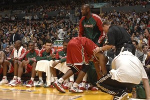 That leaves us with the bee sting that elicits a “meh” shoulder shrug when you notice it’s happened, because you’ve had more than a few of them before: Milwaukee Buck Michael Redd’s potentially career-ending left knee injury.